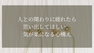 人との関わりに疲れたら思い出してほしい、気が楽になる心構え